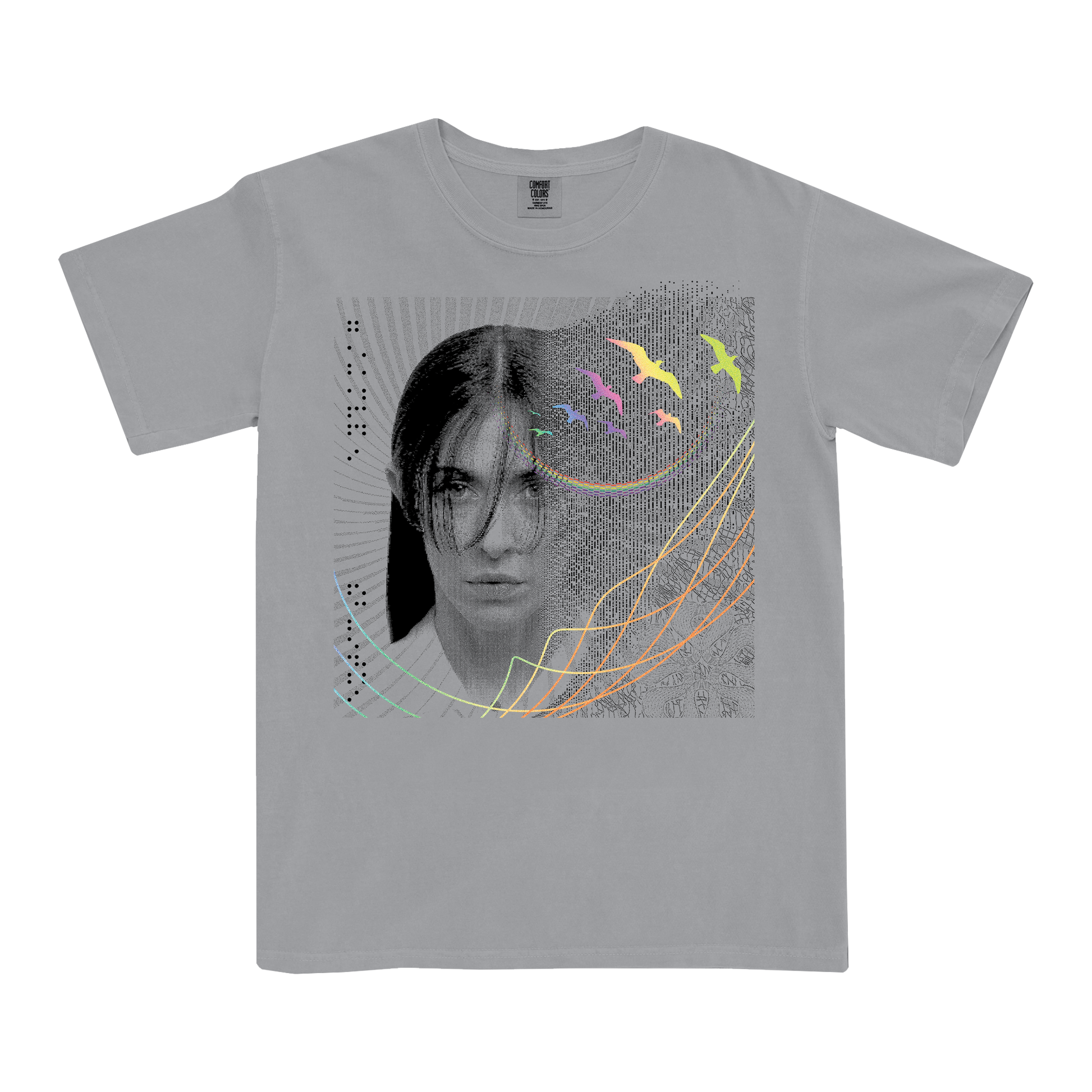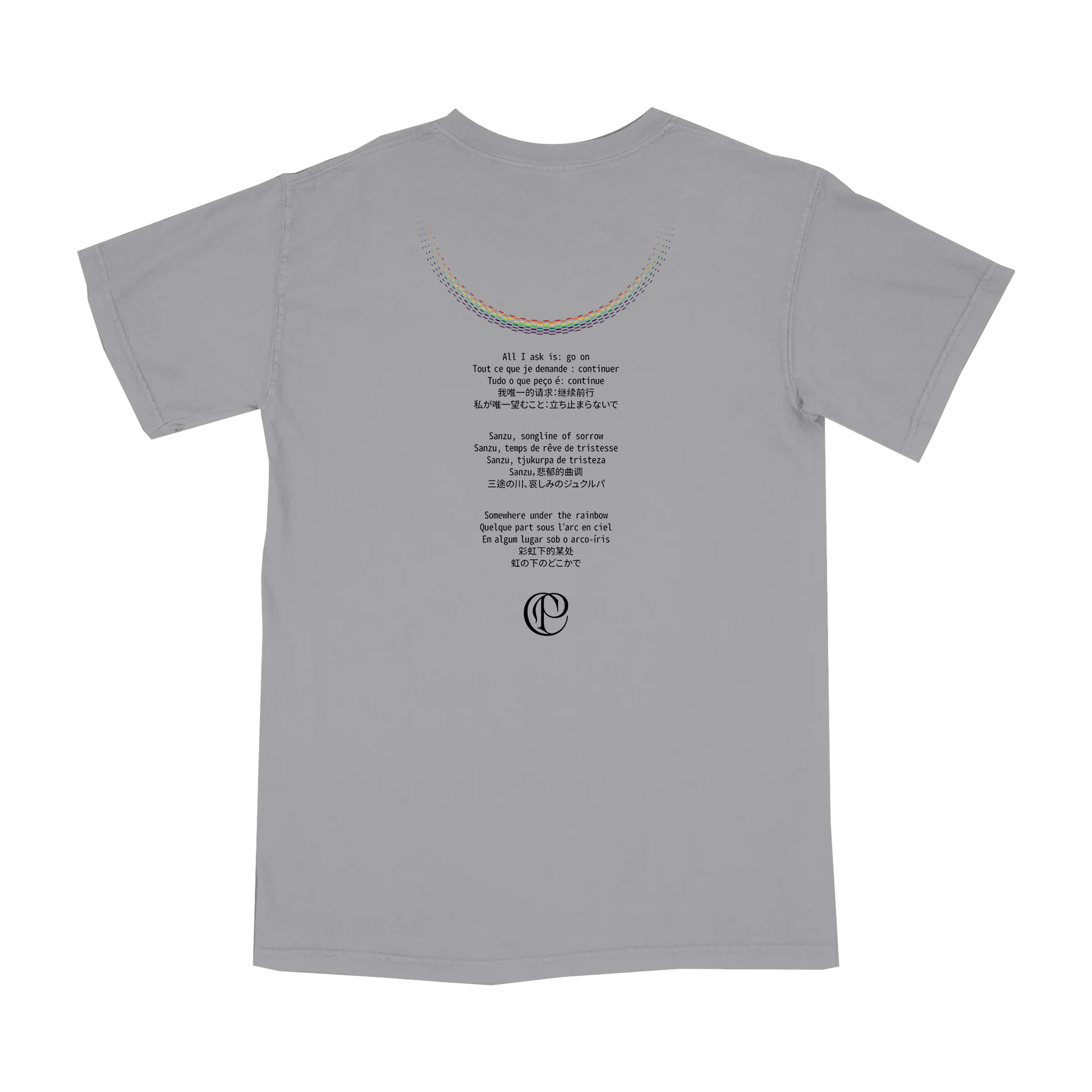 On The Beach front and back grey tee using neon inks. Design by Timothy Luke.